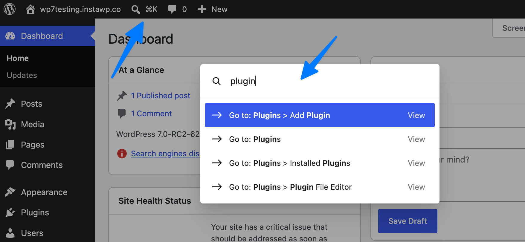 Most users still donāt realize the Command Palette exists. Itās a great and sometimes quicker way to navigate a site without using the mouse. In WordPress 7.0, they are adding a shortcut in the Omnibar to make this more apparent.