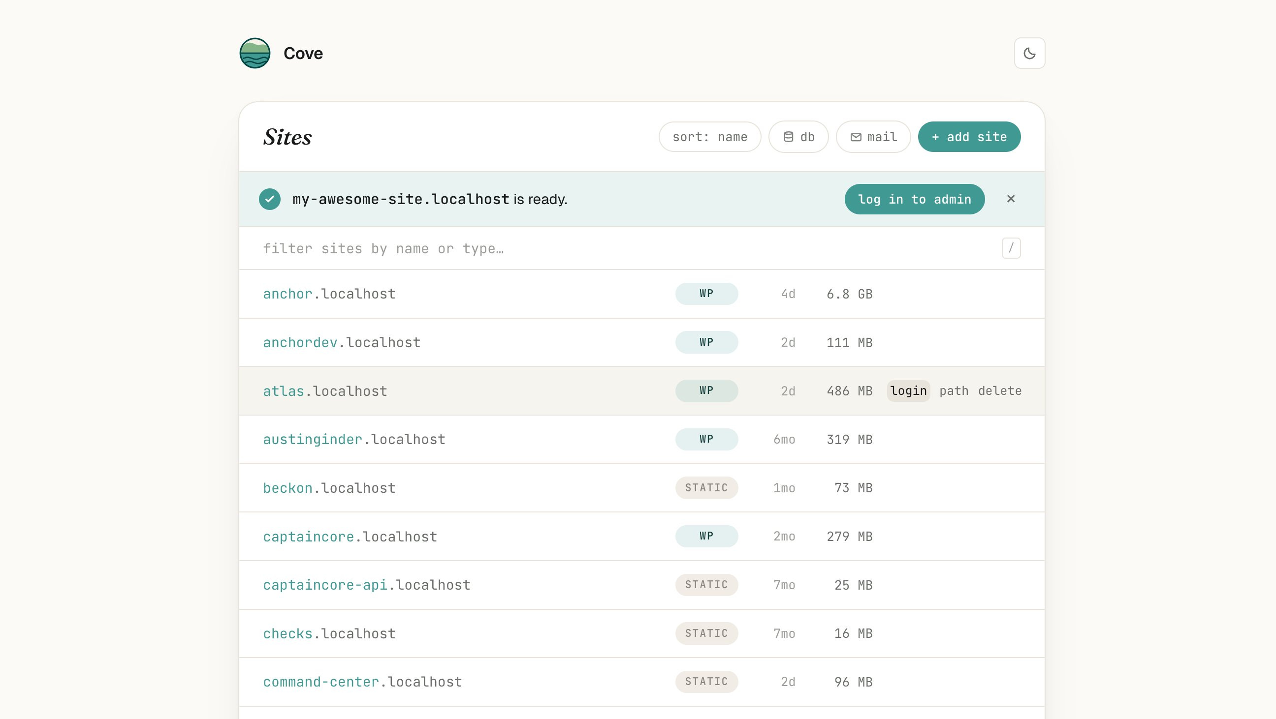 Speaking of Austin, have you tried his Cove product? It’s a tiny CLI that spins up local sites in seconds — automatic HTTPS, one-click admin login, zero Docker. Pretty cool!