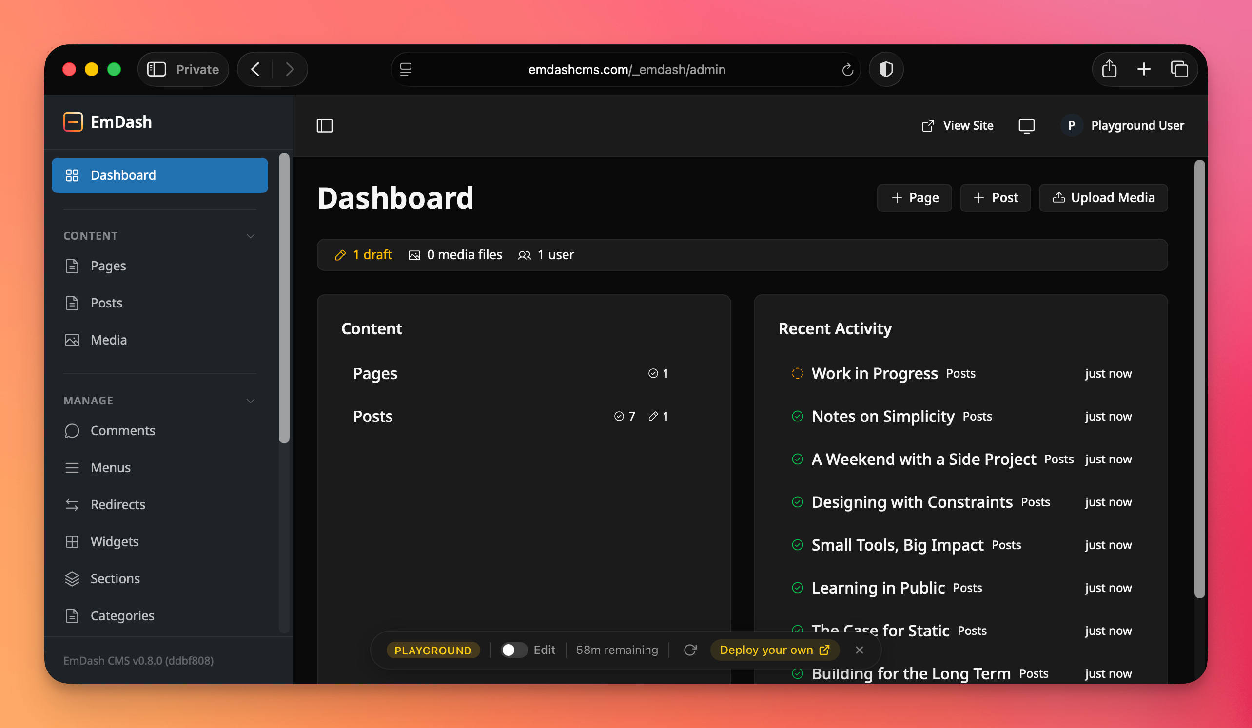 You can try out the admin interface in the EmDash Playground. Notice anything familiar looking? 😅